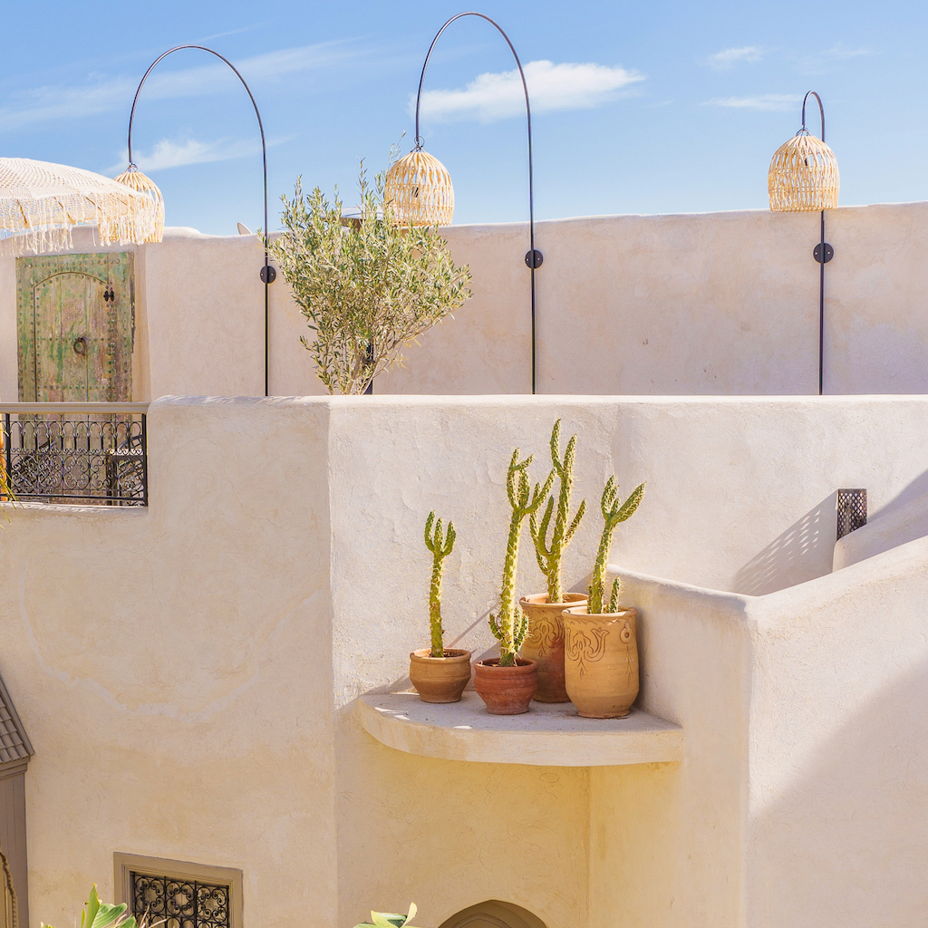 Nouvelle adresse nichée au cœur de la Médina de Marrakech, le Riad XO est une maison d’hôtes pleine de caractère. Cette bâtisse de 12 chambres et suites a été sublimée par le designer marocain Soufiane Aissouni qui a su y mêler artisanat traditionnel et décoration moderne avec subtilité. Et, fait notable, c’est aussi un des rares riads de Marrakech 100% autonome en énergie, grâce aux panneaux solaires dont il est équipé. On vous emmène à la découverte de cet oasis, situé au calme d’une ruelle en face du magnifique jardin du parfumeur Serge Lutens, où il y a de nombreuses idées déco à piquer.