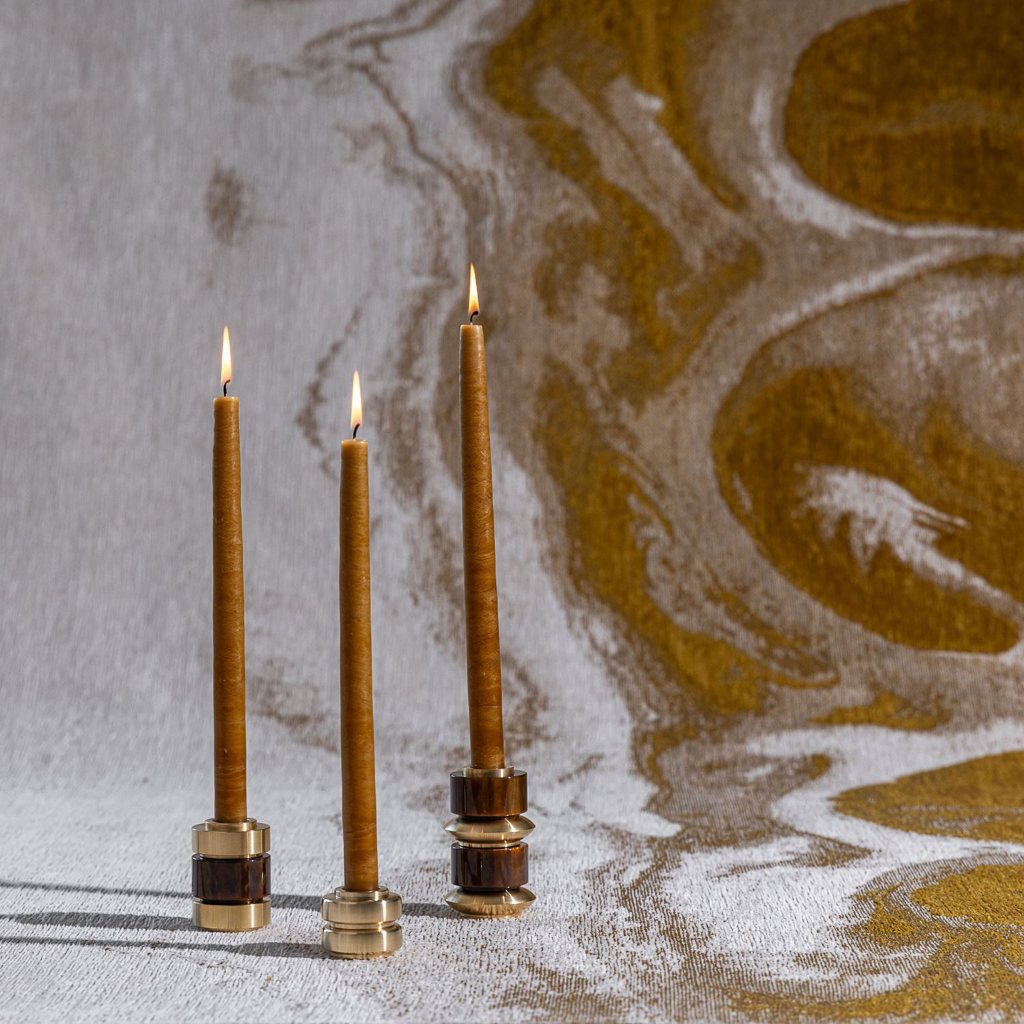 Revisitant l’esprit des années 70, la collection Dandy de Maison Pechavy célèbre l’élégance discrète des intérieurs d’Yves Saint Laurent et l’énergie du Palace. Mêlant écorésine transparente et laiton, ces bougeoirs sont empilables, tels des totems, vous permettant de créer des pièces uniques. maisonpechavy.fr