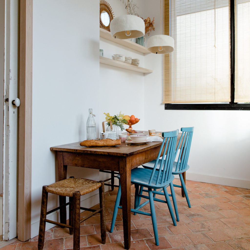 Plutôt plusieurs. Tout d’abord, d’épurer les espaces mais de conserver des meubles et des objets authentiques, de belle facture, qui traverseront le temps. Ensuite, de s’entourer de jolies matières (bois, laine, lin, terre cuite) afin de créer une ambiance authentique et singulière. Enfin, d’oser ses envies et de laisser entrer les couleurs dans la maison. Le plus important, selon moi, est que notre intérieur soit beau à nos yeux et qu’il invite nos hôtes à s’y asseoir. J’adore cette sensation qu’offrent ces maisons où l’on se sent bien dès qu’on y pénètre : c’est l’objectif que je me fixe à chaque projet.