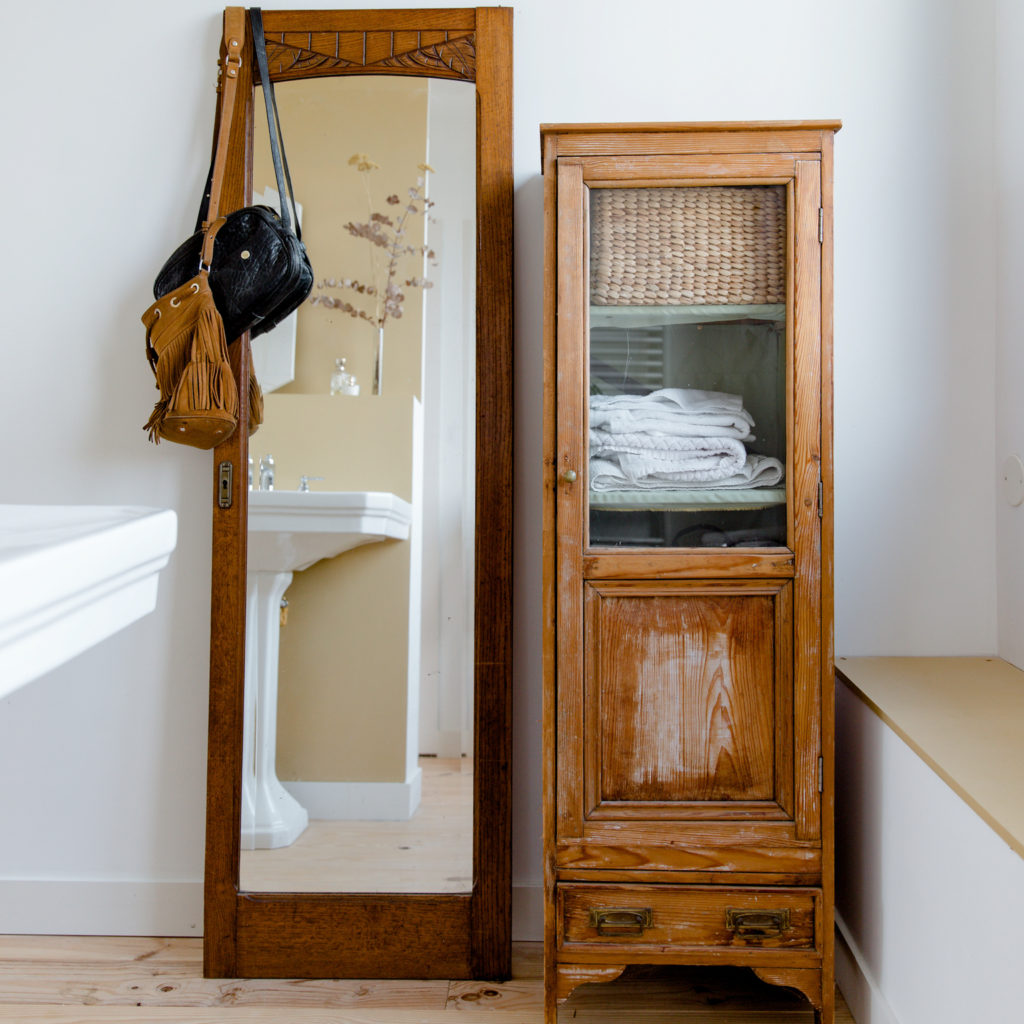 Oh oui, j’en ai plusieurs ! J’aime beaucoup chiner et je craque régulièrement pour de vieux miroirs mais aussi pour des huiles sur toile et des chaises. Il y en a un peu partout dans la maison. Et Jean hausse les yeux à chaque fois que je rentre de brocante…