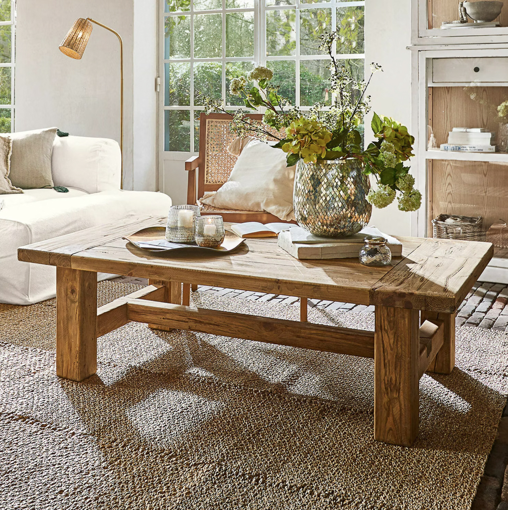salon maison de campagne avec table basse rectangulaire en bois massif