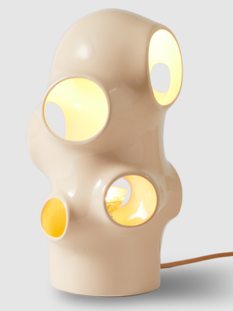 Artiste et architecte russe installée à Barcelone, Sofia Karnukaeva crée des objets en céramique en partant de formes naturelles qu’elle façonne intuitivement afin de créer des formes nouvelles. Pour concevoir sa collection de luminaires Nomad II, elle a travaillé autour de l’idée d’un habitat enveloppant. Ses lampes évoquent tour à tour des grottes, des niches ou des ruches, soit un espace privé et sûr qui peut alterner entre la semi-obscurité et la lumière. sofiakarnukaeva.com