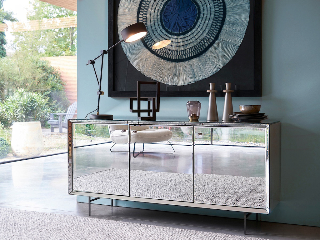 Dans la famille années 70, on demande le meuble en miroir. Avec ses surfaces réfléchissantes, ce mobilier renvoie la lumière et augmente les perspectives. De ce fait, il agranditcomme par magie l’espace où il est installé. Avec le retour confirmé de la finition chrome dans la décoration, il n’est pas étonnant que l’effet miroir ait la cote. Parce qu’il n’en est finalement qu’une extension. Et puis, du mobilier aux objets déco, la finition miroir est la meilleure des alliées pour faire briller votre intérieur.