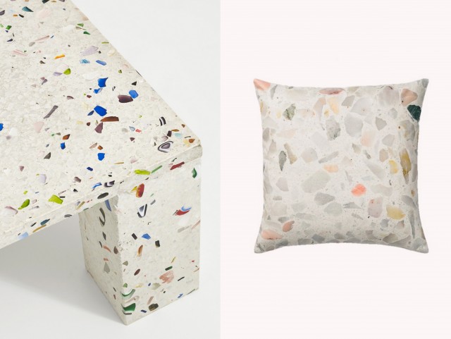 Il y a un an, la planète déco était en émoi face à la réinterprétation du terrazzo par quelques marques branchées. Lors des Designers Days parisiens de 2015, Petit h, l’atelier de recyclage créatif de la maison Hermès, a présenté un terrazzo imaginé par les architectes d’intérieur-designers Nicolas Daul et Julien Demanche qui y ont intégré pièces de métal, boutons et autres composants écartés par la prestigieuse marque à cause de leurs défauts. Quasiment au même moment, Maison Kitsuné en a fait le matériau phare de la déco de sa nouvelle boutique et de son café du Marais : son terrazzo a été conçu « sur mesure » par Dzek et le designer Max Lamb, spécialistes en la matière. En se réappropriant de manière inattendue ce matériau millénaire tombé en désuétude, ces marques pointues l’ont érigé au rang de véritable must have. L’idée a ainsi fait des émules et inspiré nombre de designers et de marques qui, depuis, utilisent le terrazzo ou ses motifs pour leurs créations.